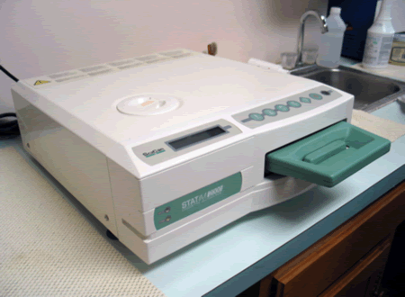 We use a special high speed cassette sterilizer to make sure all instruments can be cleaned and sterilized as soon as possible rather than waiting around until the sterilizer is available.